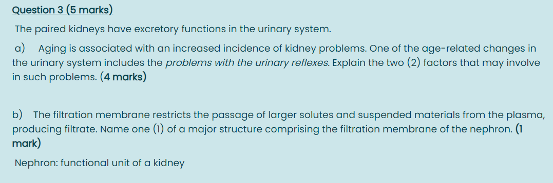 Renal efficiency in waste disposal is impaired due to. The functions of the urinary system include. Muscle changes and changes in the reproductive system can affect bladder.